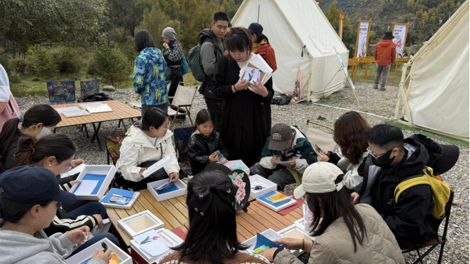 精美的湟中堆绣、面塑、皮影、银铜器等非遗作品集中亮相。非遗传承人现场讲述湟中非遗传承情况,展示精湛技艺,并与游客互动教学,让文化遗产“活”了起来。游客不仅大饱眼福,还能亲手体验制作的乐趣,深刻感受深厚的文化积淀。