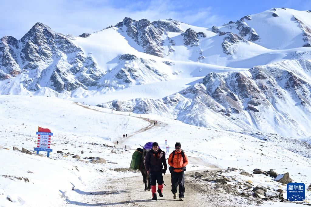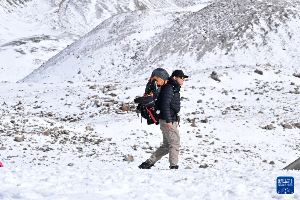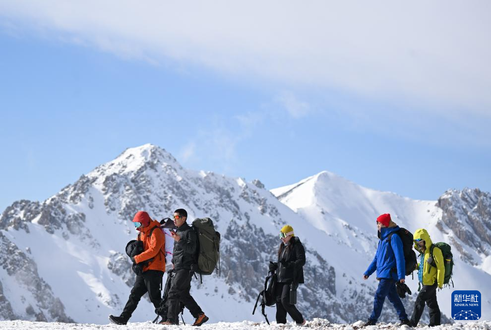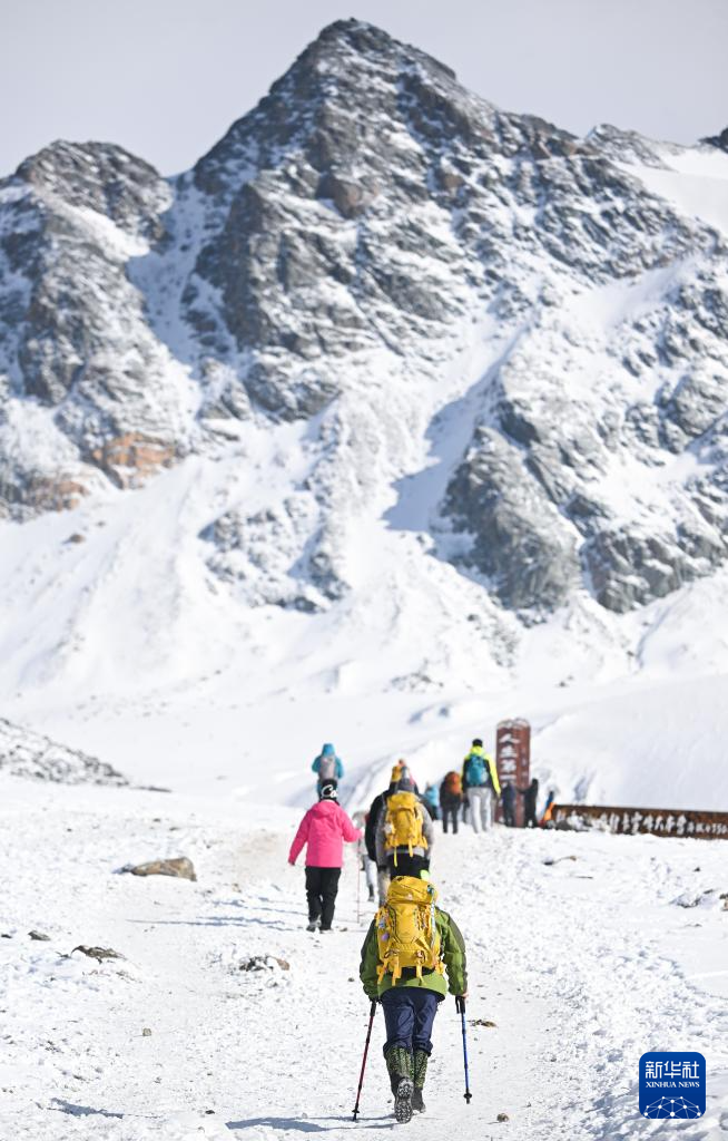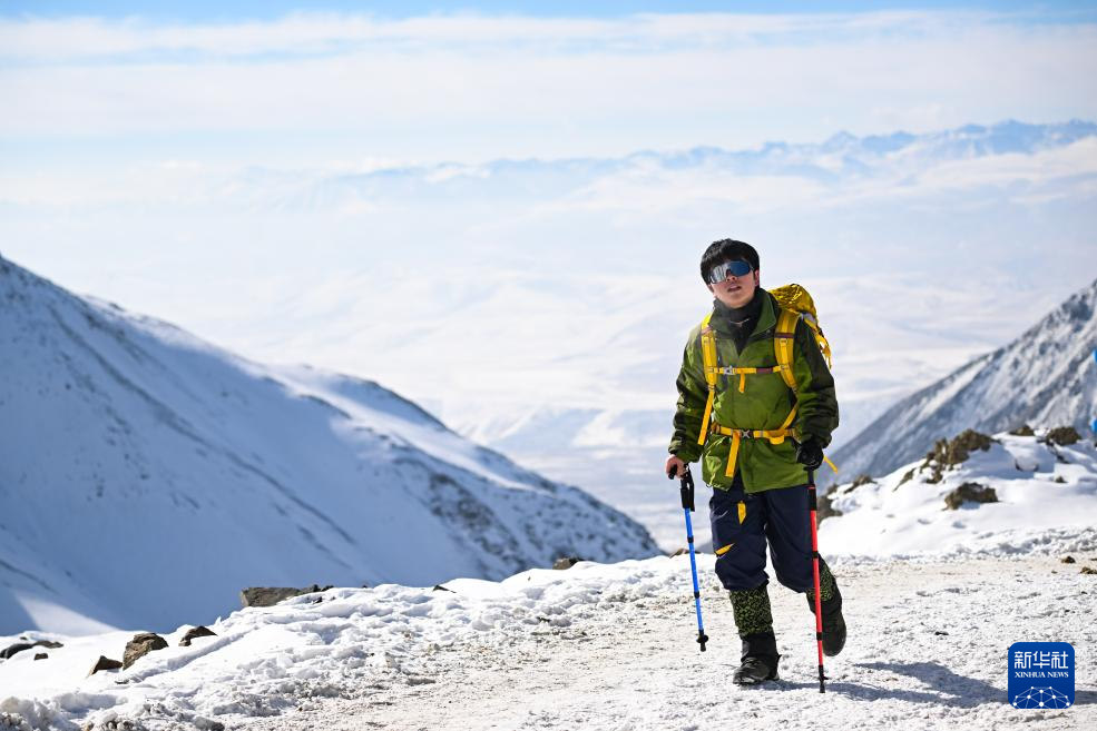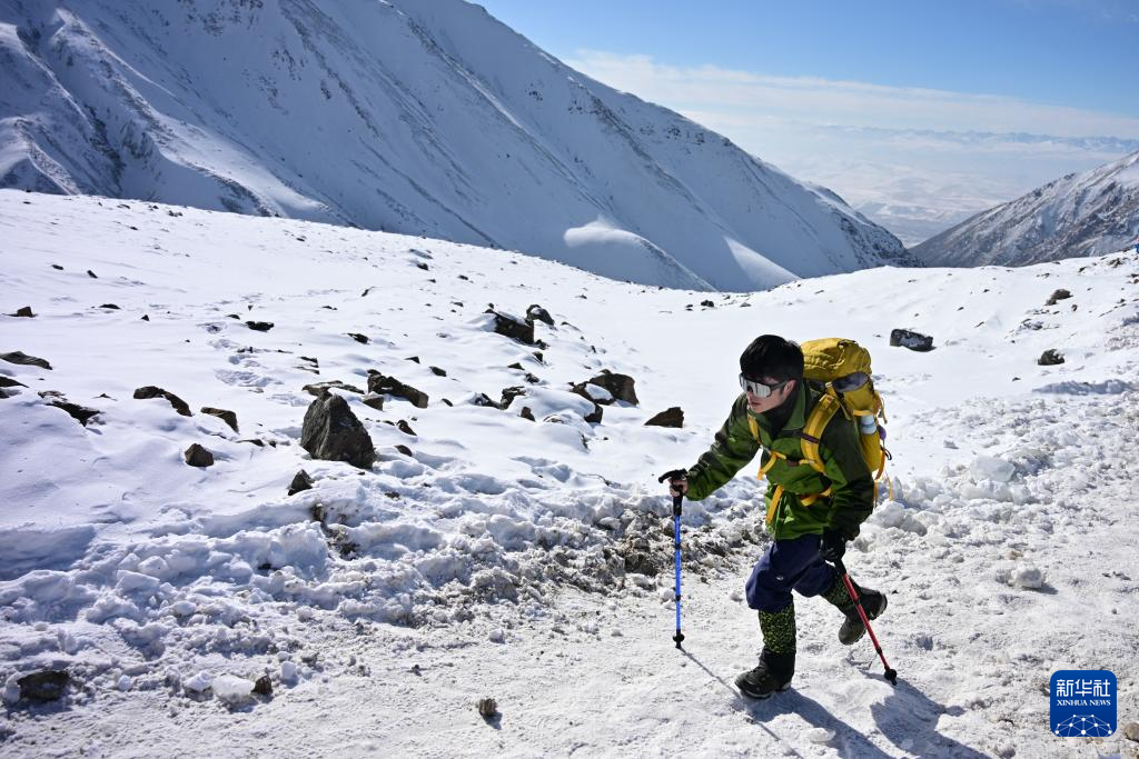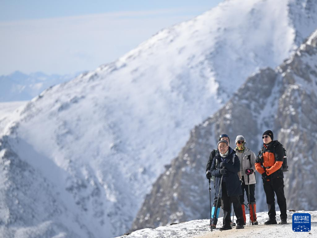 1月1日,登山爱好者在攀登岗什卡雪峰。新华社记者 齐芷玥 摄