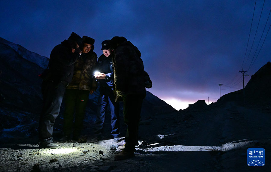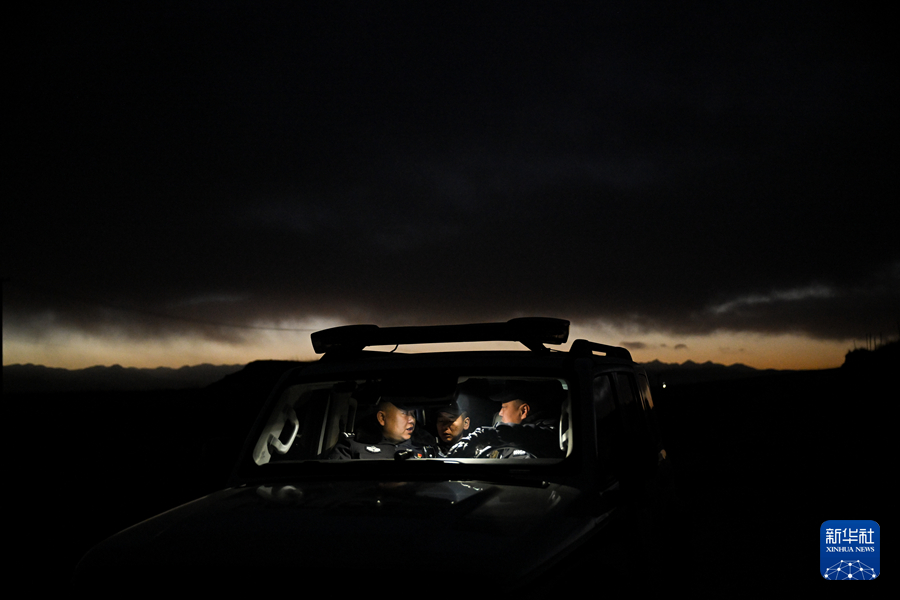 1月8日晚,在青海省海北藏族自治州门源回族自治县境内的老虎沟,民警在巡护途中休息。新华社记者 张龙 摄