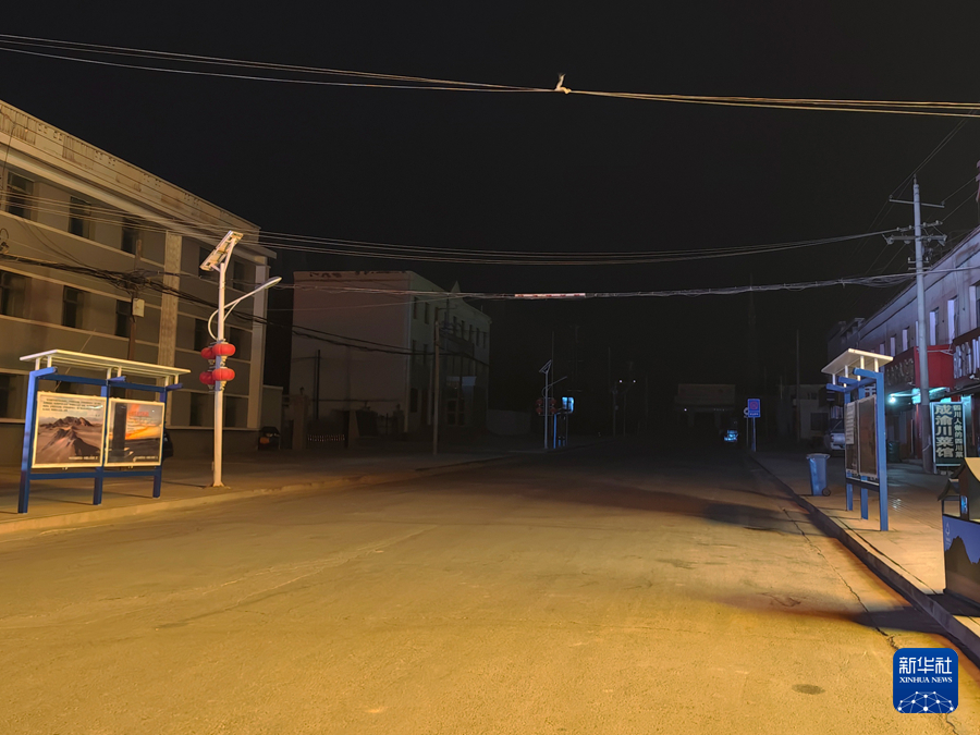 夜晚,为守护暗夜星空,冷湖镇部分路段路灯关闭。新华社记者 陈杰 摄
