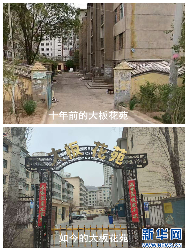 (拼版照片)新旧大板花苑对比。城北区住宅楼院(物业)服务中心供图。